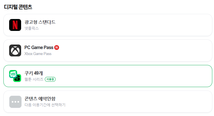 6. 네이버 플러스 맴버십을 통한 디지털 콘텐츠 이용