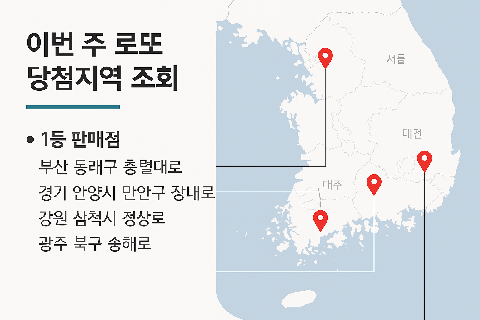 - 1등 6곳: 서울·부산·경기·강원·충북·경남 총 6개 판매점